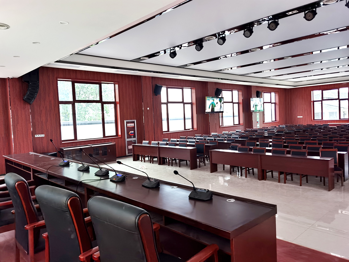 #1     京邦電子(KING-BANG)為安徽天長(zhǎng)市龍崗黨校設(shè)計(jì)智能會(huì)議系統(tǒng),鑒于該項(xiàng)目場(chǎng)景有教室、教育科研單位的培訓(xùn)、會(huì)議、學(xué)術(shù)報(bào)告、多功能廳等,我們?cè)谠O(shè)計(jì)之初把這些會(huì)議室進(jìn)行了檔次的劃分。有線手拉手系統(tǒng),將所有話筒進(jìn)行串聯(lián),進(jìn)入主機(jī)很方便,屬于固定桌面安裝。