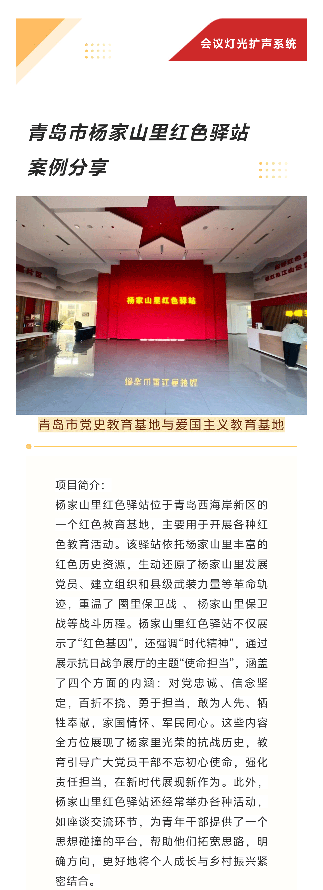 【京邦·會(huì)議燈光擴(kuò)聲系統(tǒng)】青島楊家山里紅色驛站